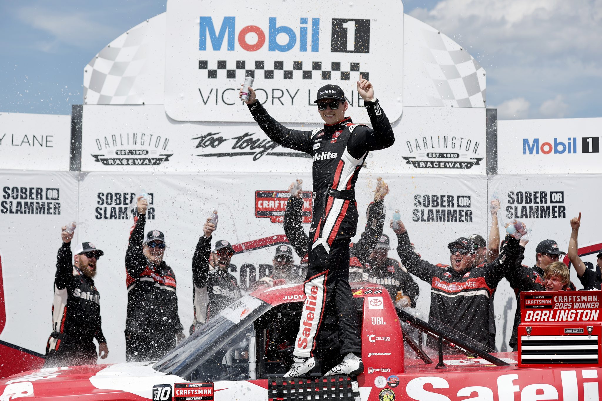 Qui va bien pouvoir arrêter Corey Heim dans sa quête de titre de champion en NASCAR CRAFTSMAN Truck Series. Les Sober or Slammer 200 disputés sur le Darlington Raceway n’ont pas donné une réponse franche. Layne Riggs a bien mené 71 tours, contre 65 au vainqueur du jour, mais le pilote de la Front Row Motorsports termine dix-septième et concède vingt points à Corey Heim qui est déjà assuré d’une place au second tour des playoffs.