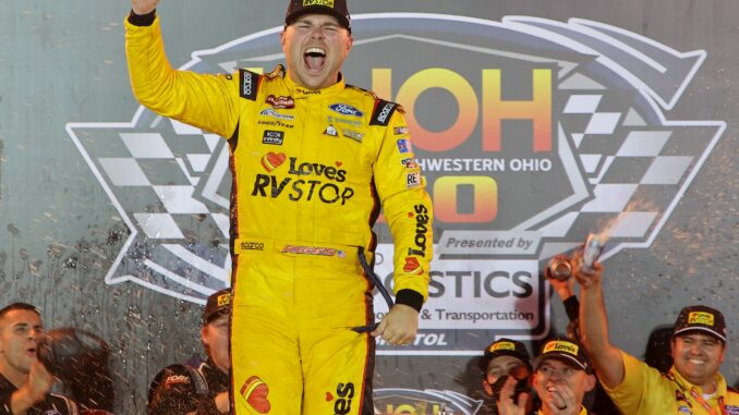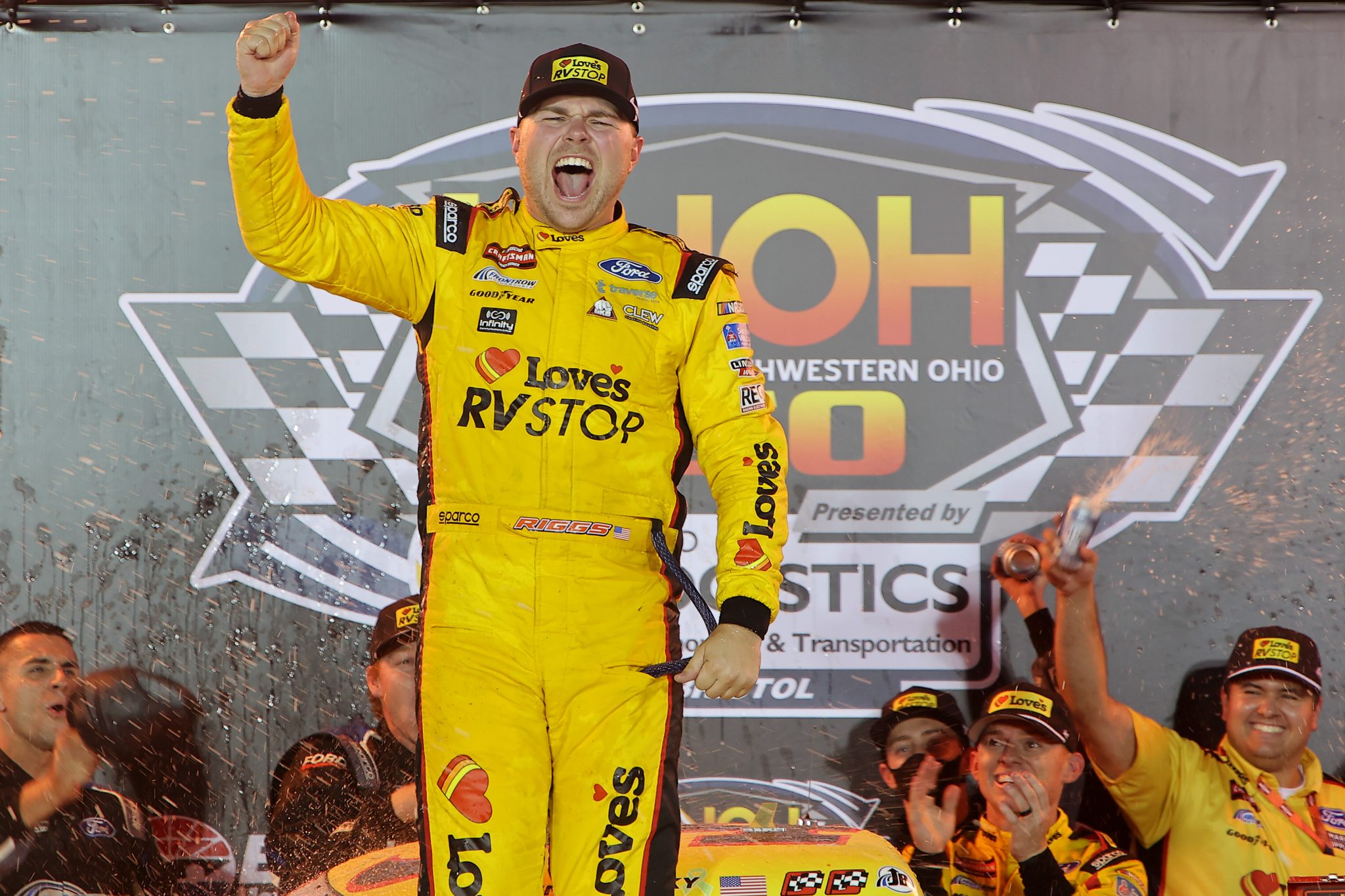 Layne Riggs est un nouveau membre du spin and win en NASCAR CRAFTSMAN Truck Series avec sa victoire acquise sur le Bristol Motor Speedway après être parti à la faute dans le premier tour des UNOH 250 Presented by Ohio Logistics.