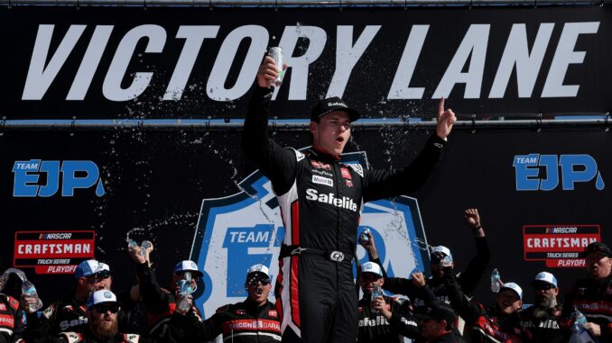 Sur l’ovale de Loudon, dans le New Hampshire, Corey Heim a passé 124 tours en tête, remporté les deux segments et la course. Sous le drapeau à damier il devance Chandler Smith, bien incapable de se rapprocher suffisamment du pilote TRICON Garage pour porter une attaque dans les derniers tours. Un résultat qui n’est pas suffisant pour se qualifier au second tour.