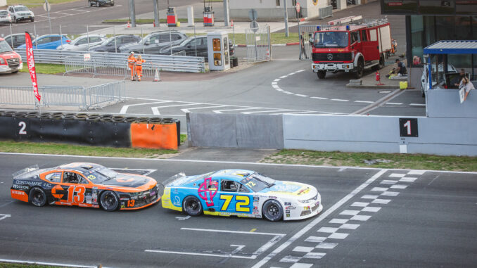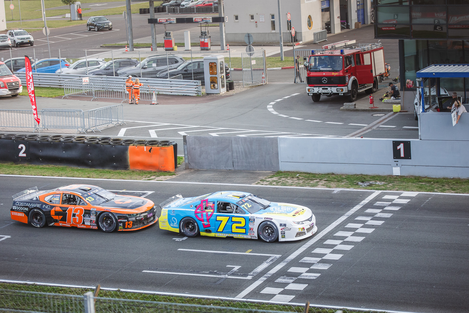 Un succès d’autant plus marquant que la Toyota Camry n°72 avait été lourdement endommagée lors de la course EuroNASCAR PRO plus tôt dans la journée. Mais grâce au travail acharné de son équipe, Mulders a pu s’élancer depuis la pole position, et rapidement prendre les commandes devant Thomas Toffel et Krasonis.