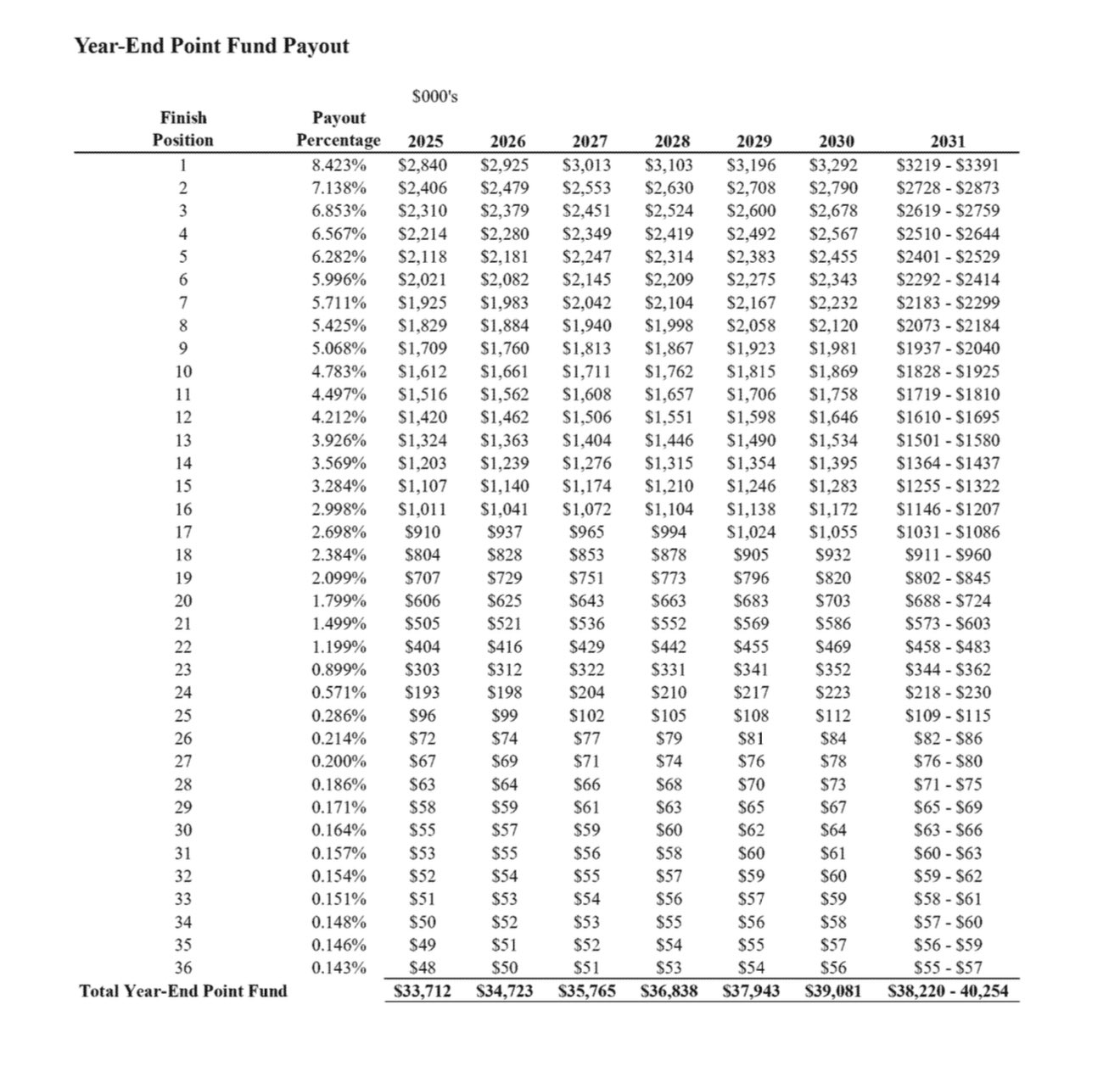 Ce mécanisme de rémunération, à la fois incitatif et compétitif, vise à renforcer la stabilité du plateau tout en récompensant la performance. Chaque fin de saison, la NASCAR communiquera les montants définitifs dus aux équipes dans les 30 jours suivant la dernière course du calendrier.