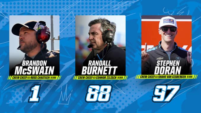 La troisième voiture, la Chevrolet n° 88, sera pour Connor Zilisch. Le jeune pilote arrive en Cup Series après une saison exceptionnelle en Xfinity Series avec JR Motorsports : dix victoires et le titre de Rookie de l’année. Randall Burnett, vainqueur du championnat Xfinity 2019 avec Tyler Reddick, dirigera la n° 88. Burnett affiche six victoires en carrière en Cup Series. L’association entre Zilisch et Burnett est clairement construite pour le long terme.