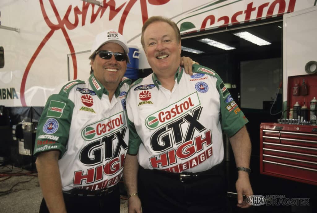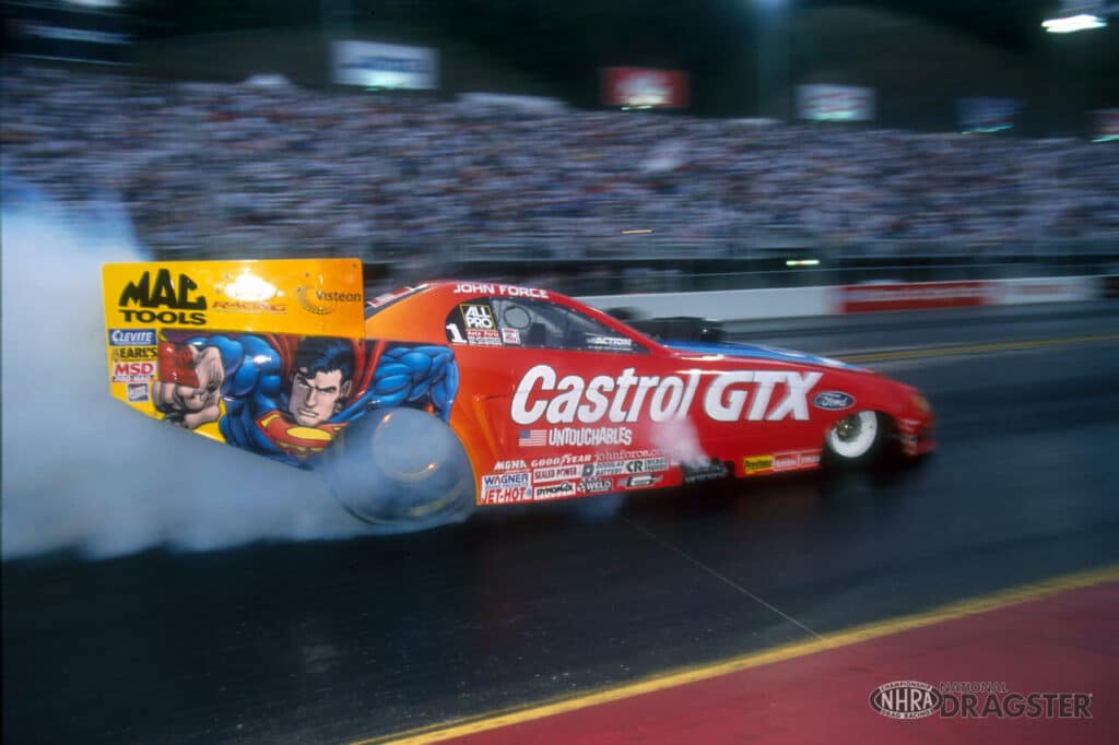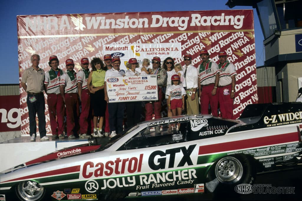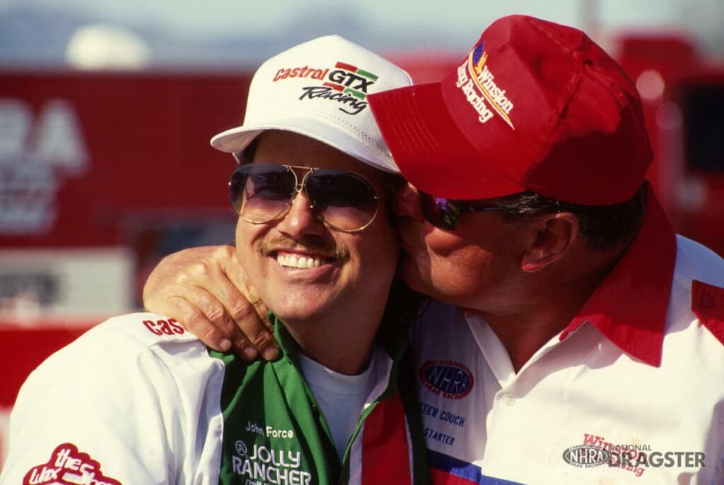 Sa résilience ne date pas de ses débuts en Funny Car. Touché par la poliomyélite durant l’enfance, Force a pourtant joué quarterback au lycée au sein d’une équipe qui a enchaîné 27 défaites consécutives. Cette période lui a appris qu’une structure gagne grâce à son collectif. Une leçon qu’il a appliquée en 1985 lorsqu’il a emprunté suffisamment d’argent pour recruter Austin Coil comme crew chief. L’arrivée de Coil, puis de figures comme Bernie Fedderly et John Medlen, a transformé la John Force Racing en une machine à dominer.