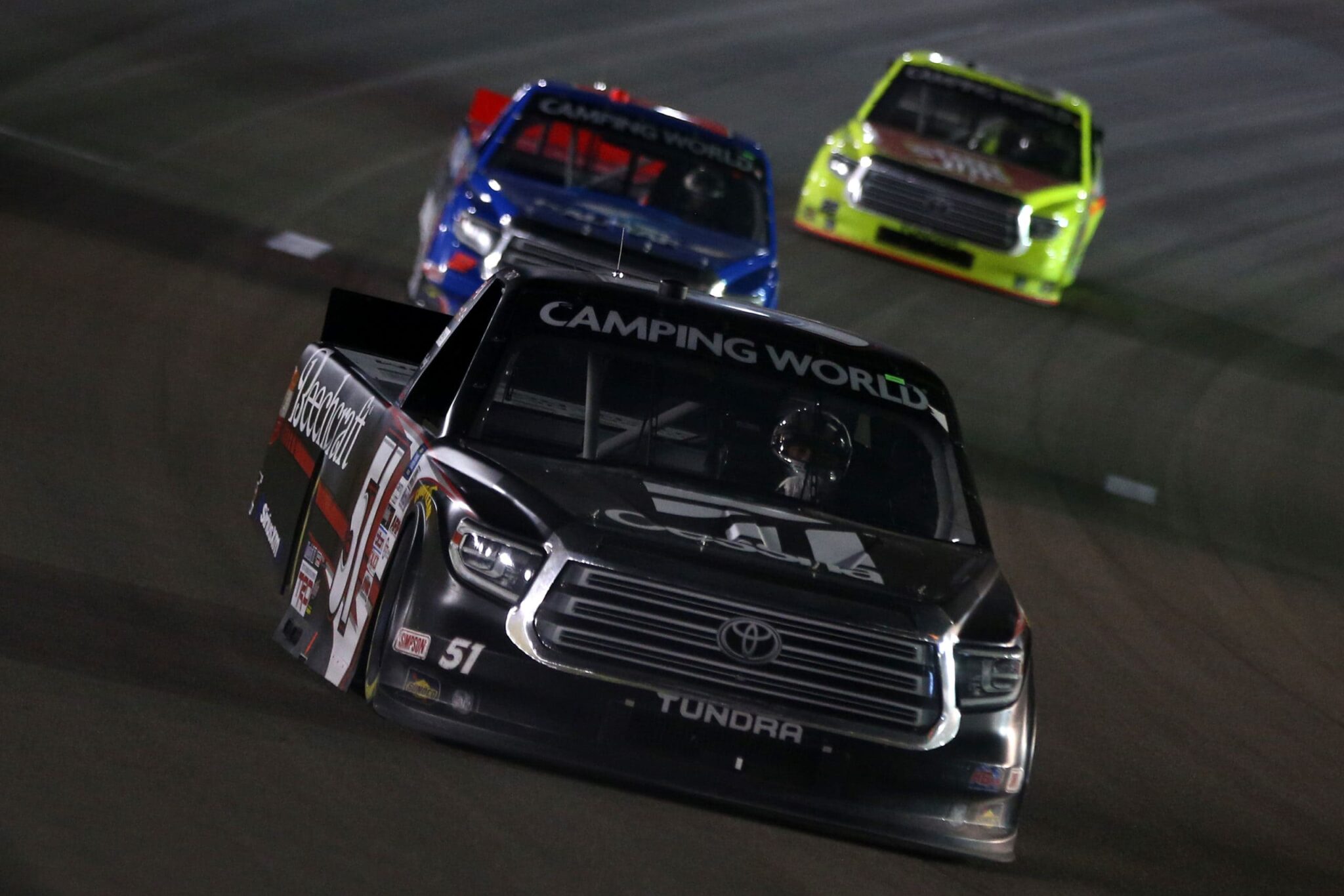 Le week-end dernier à Las Vegas, Kyle Busch a subi une crevaison. Il a alors emmené son Truck sur le bas du circuit et est parti en tête à queue. Cet incident à forcé les officiels à sortir un drapeau jaune. Après la course, Busch n’a pas voulu s’exprimer sur ce passage.