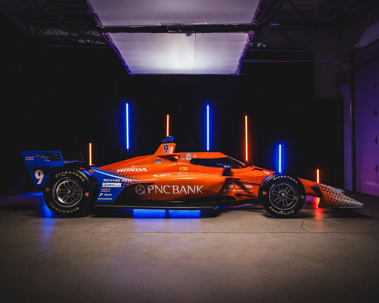 Le design actualisé met encore plus l’accent sur l’orange, en lien avec l’identité visuelle de PNC Bank, tout en conservant les couleurs orange, bleu et blanc que les fans associent à Dixon depuis 2018. Cette saison marque la 25e année de l’ancien vainqueur des 500 Miles d’Indianapolis en monoplace américaine, dont 24 passées sous les couleurs de Chip Ganassi Racing.